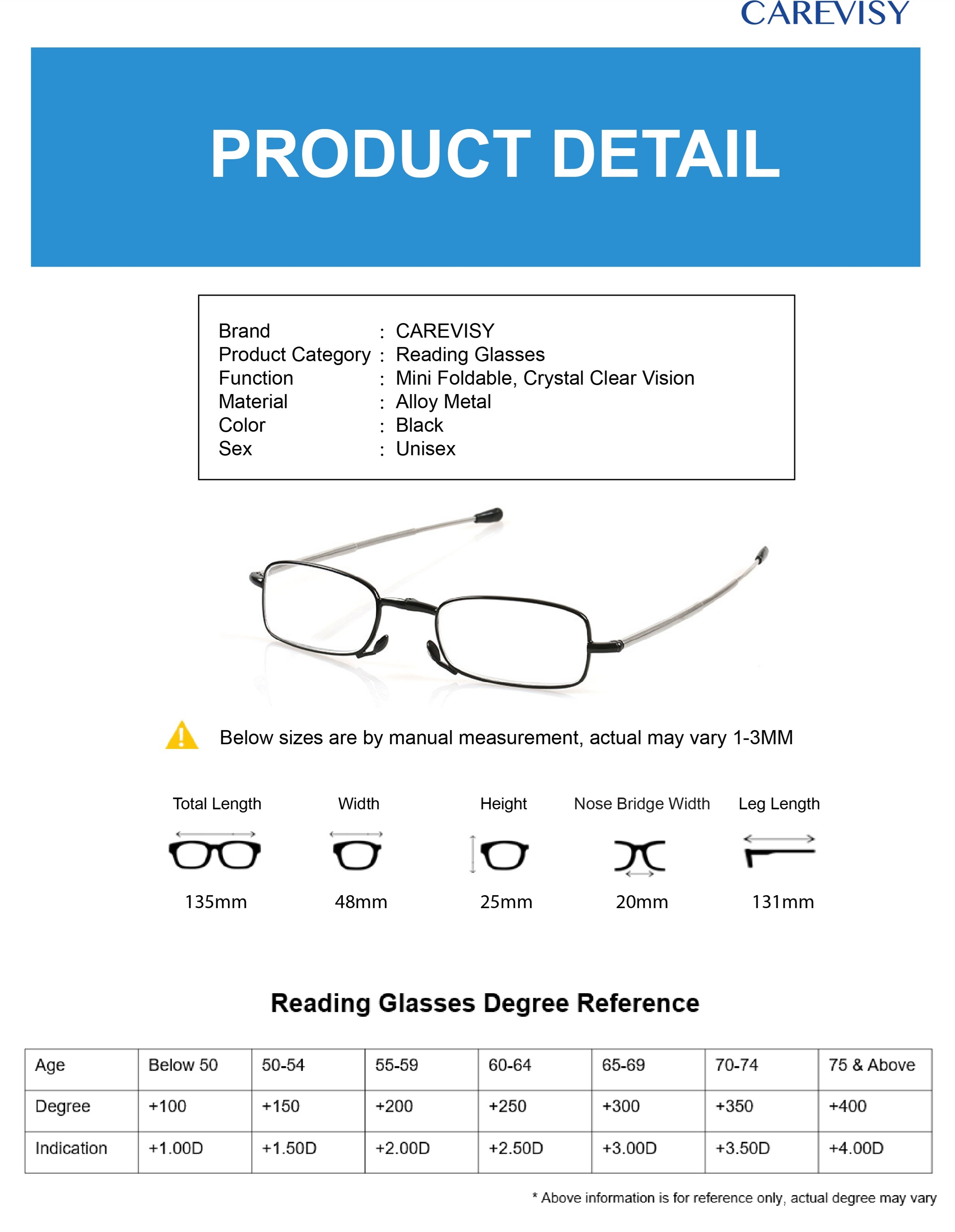Welcome to CAREVISY, a professional Eyewear brand. We provide high quality Reading Glasses, Computer Glasses, Sunglasses and other Eyewear Accessories at affordable prices based in Singapore. Customer's satisfaction is our top priority. We valued customer's time and we will post out your order by next day. Afterwards, logistic team will pick up your parcel and delivery it to you, expected delivery time by logistic team is about 1-2 working days. Feel free to contact us if you have any queries. Care for your vision and enjoy your shopping now!