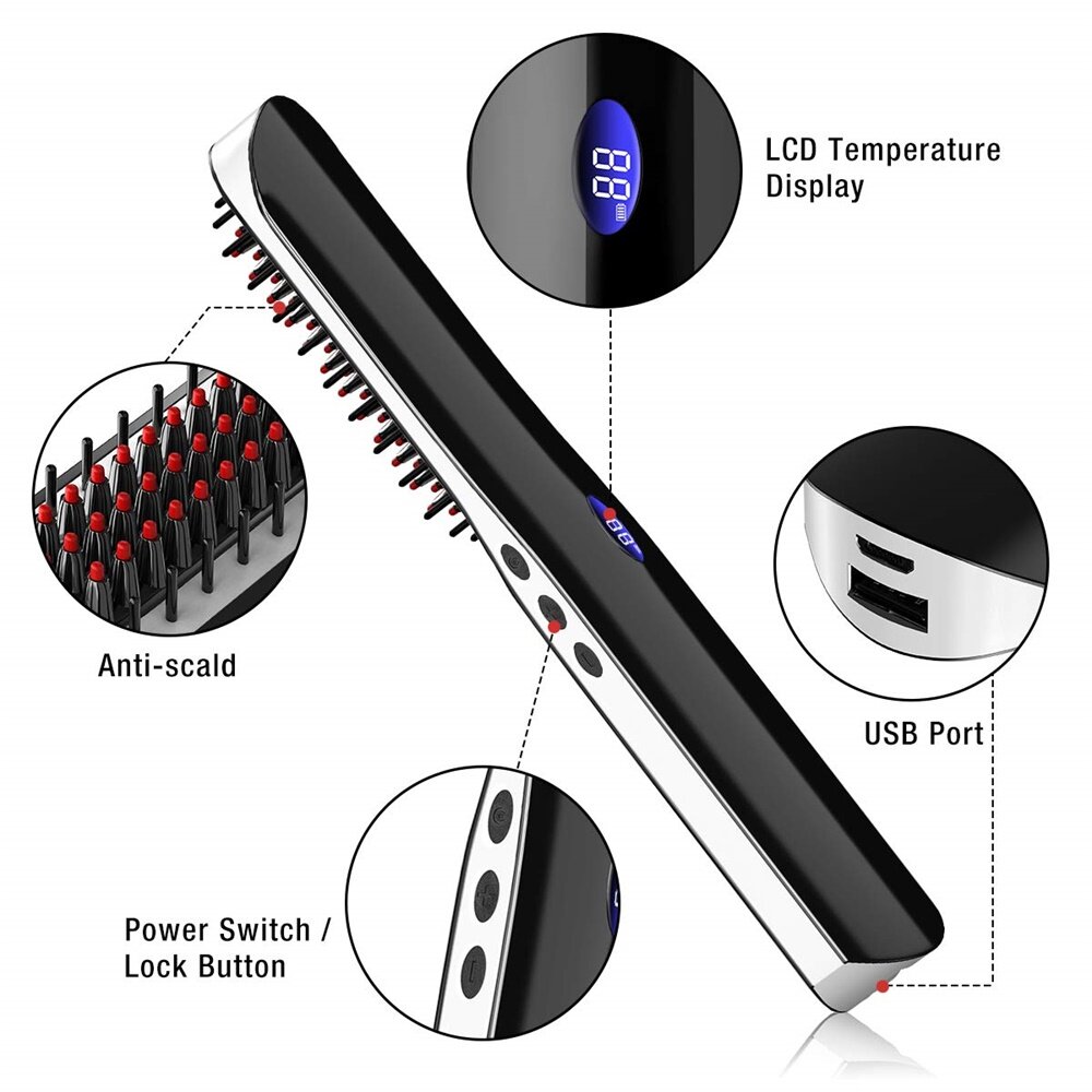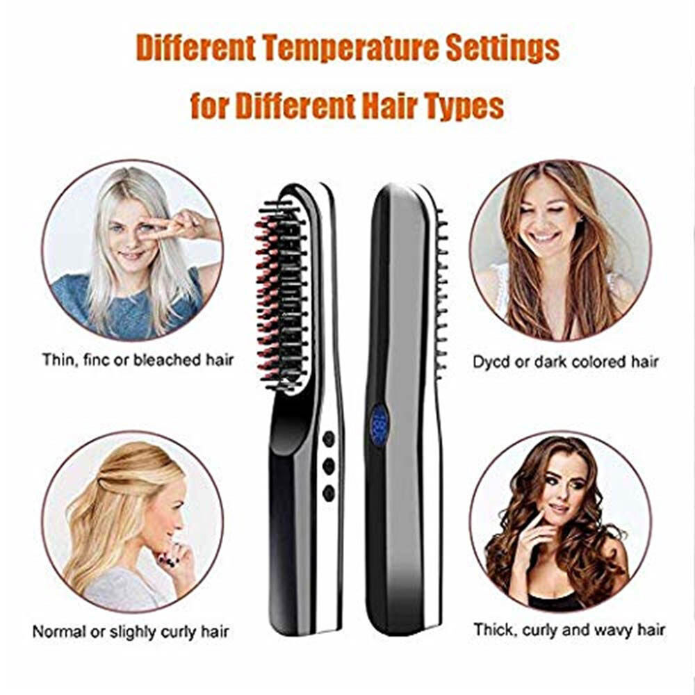 Portable Cordless Beard Straightener Electric Hair Brush Comb for Men/Women
