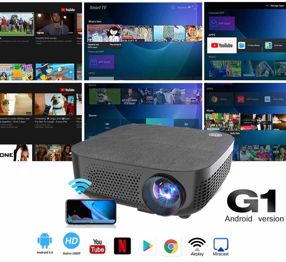 【Native 1080P Android System】Mirval G1 WiFi Mirroring LED 1080P Portable Projector 4K Home Theater 7500 Lumens LCD Video Proyector Classroom Office Projectors