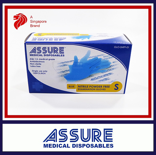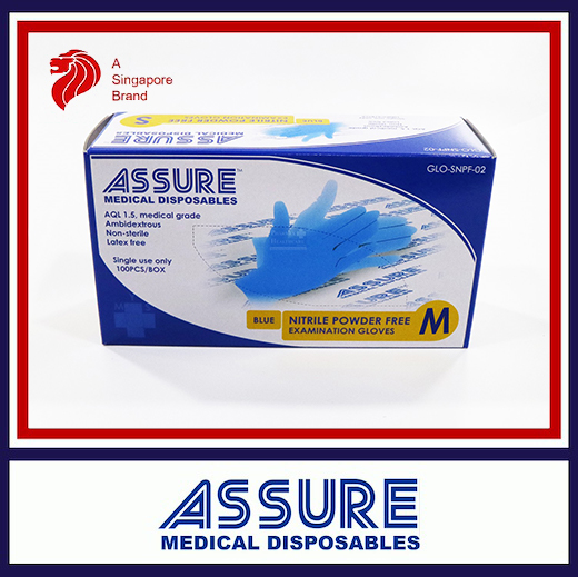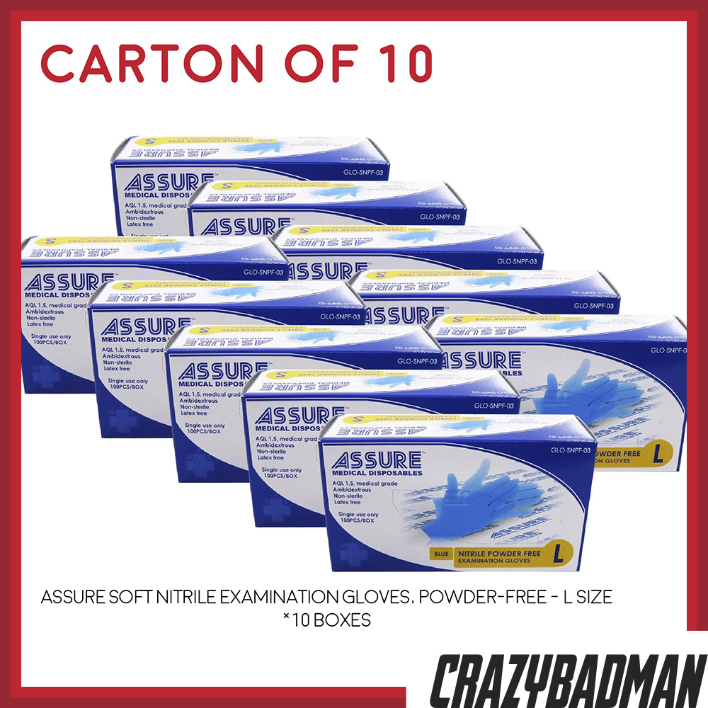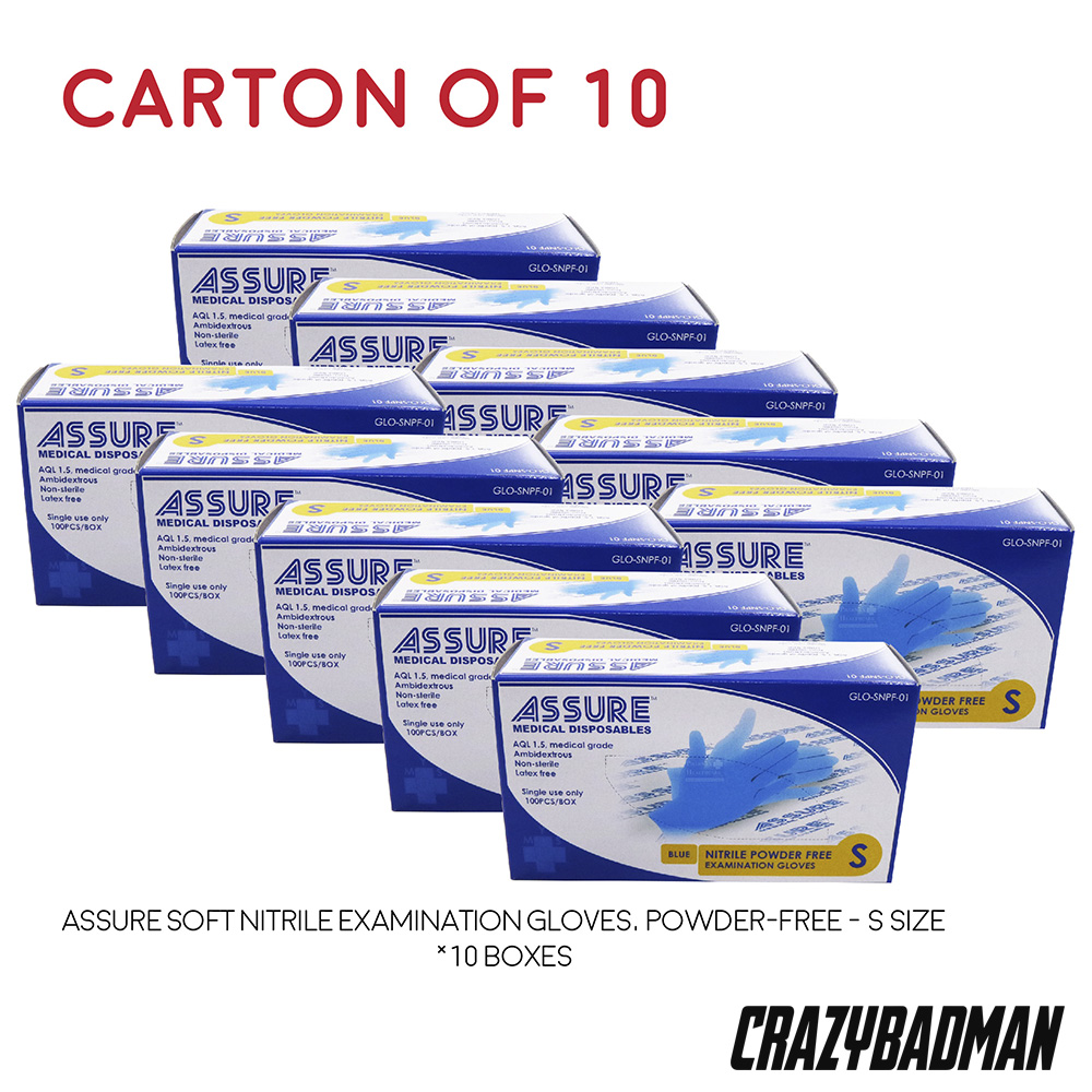 [Carton of 10] ASSURE Soft Nitrile Disposable Examination Gloves, Powder-Free (100pcs/box, Size, XS/S/M/L))