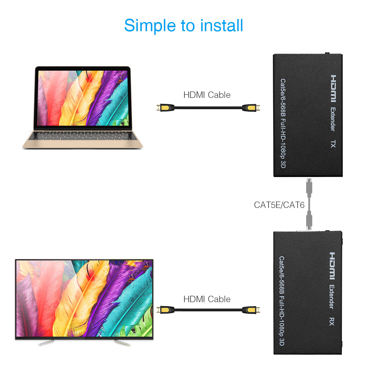 The HDMI Extender lets you extend HDMI audio/video signal by up to 60 meters (196 feet) over single Lan cable.