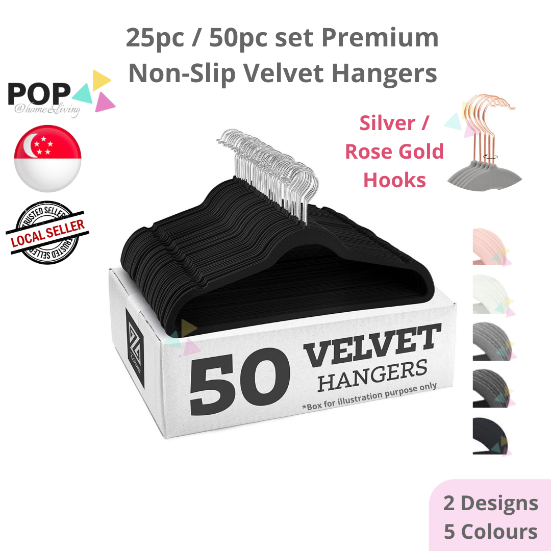 25 / 50 PC SET Rose Gold Silver Premium Non-Slip Velvet Clothes Hanger Slim Pink White Black Grey Anti-Slip Hangers Wardrobe Thin Closet Laundry Organiser Organizer CNY Spring Cleaning Raya Space Save