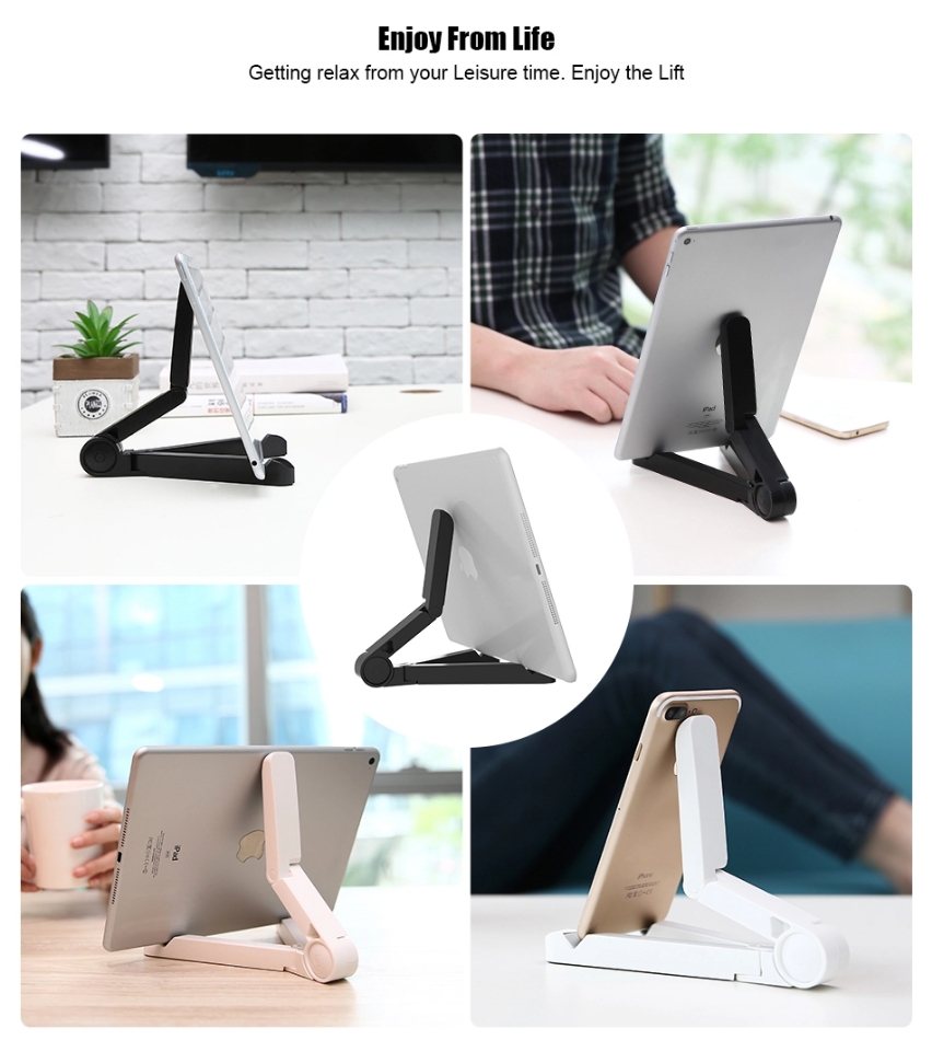 Foldable Phone Tablet Stand Holder Adjustable Desktop Mount Stand Tripod Table Desk Support for iPhone iPad Mini 1 2 3 4 Air Pro Black and white colour