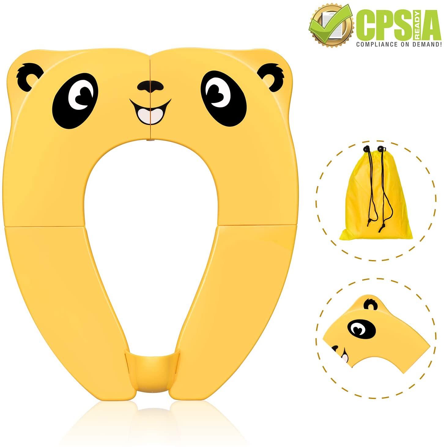Travel Potties,Toddler Potty Seat Cover Travel Portable Potty Seat for Kids Non-Slip Foldable Toilet Seat Pad with Carry Bag & Splash Guard Yellow