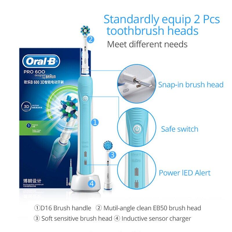Oral B PRO600 Electric Toothbrush 3D Deep Clean Teeth Whitening Automatic Timer Rechargeable Tooth Brush Replacement Brush Head