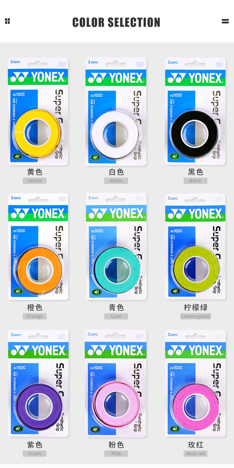 3-Pack Yonex Badminton Racket Hand Glue Ac102 Slingshot Fishing Rod YY Sticky Non-Slip Sweat Absorbing