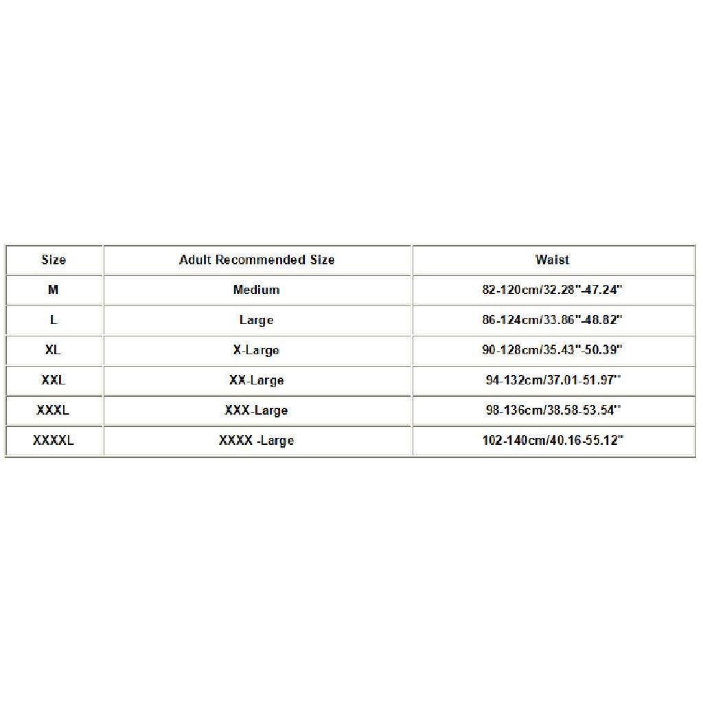 | Size:XXL | Adult Recommended Size:XX-Large | Waist:94-132cm/37.01-51.97'' |