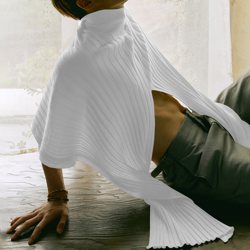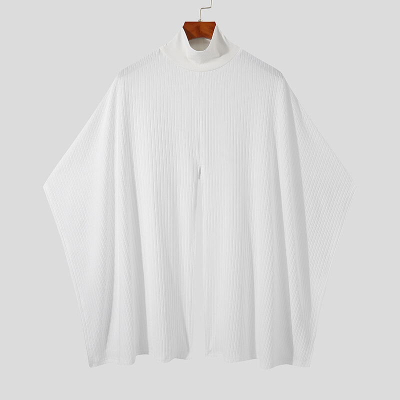 Beehoo INCERUN Mens Loose Poncho Cloak High Neck Knitwear Cape Shirts Short Sleeve Hippy Tops