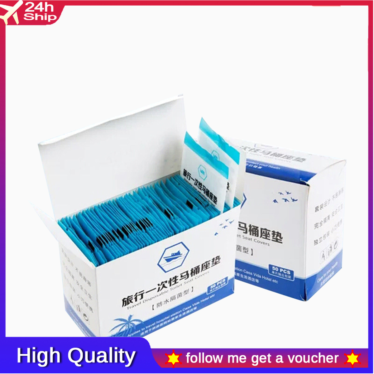 Package Included:50pcs / set Toilet Disposable Sticker (in box)Friendly TipsIf the weather is bad or a natural disaster occurs, the product will not deliver on time. Hope you forgive me.Please note that slight color difference should be acceptable due to the light and screen.PromiseIf the product has any quality problems, please feel free to contact us, we will help you solve the problem as quickly as possible.