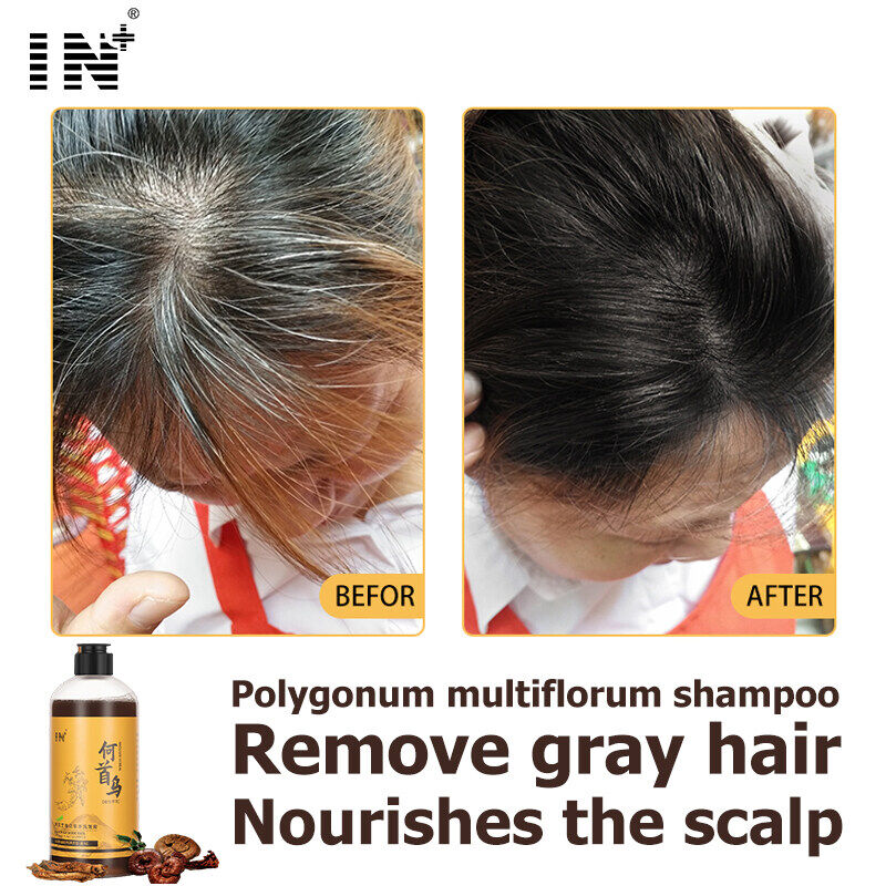 500ml White hair to black hair shampoo natural plant herb health nourishment hair root oily control harmless hair scalp promote hair growth gray hair shampoo treatment care hair darkening suitable for