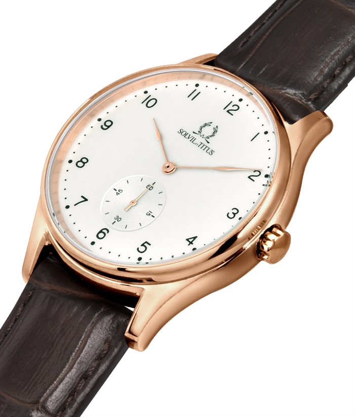 Solvil et Titus Classicist Women's Small Second Quartz in Silver White Dial and Dark Brown Leather Strap W06-03255-003