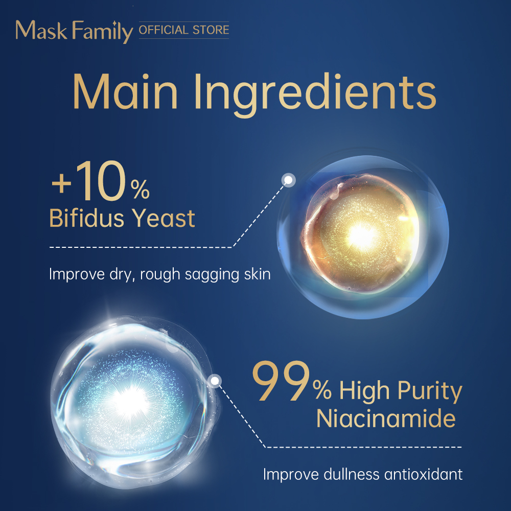 MASK FAMILY Age Recovery Anti-Aging Facial Mask Sheet (30ml/pc) with Bifida Ferment Lysate, Anti-Oxidation, Moisturizing, Brightening and Tighten Skin with Nicotinamide and Ceramide