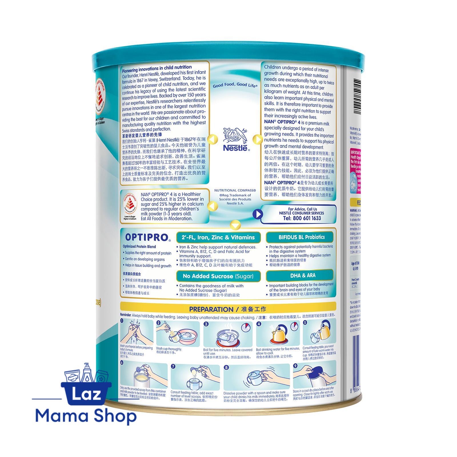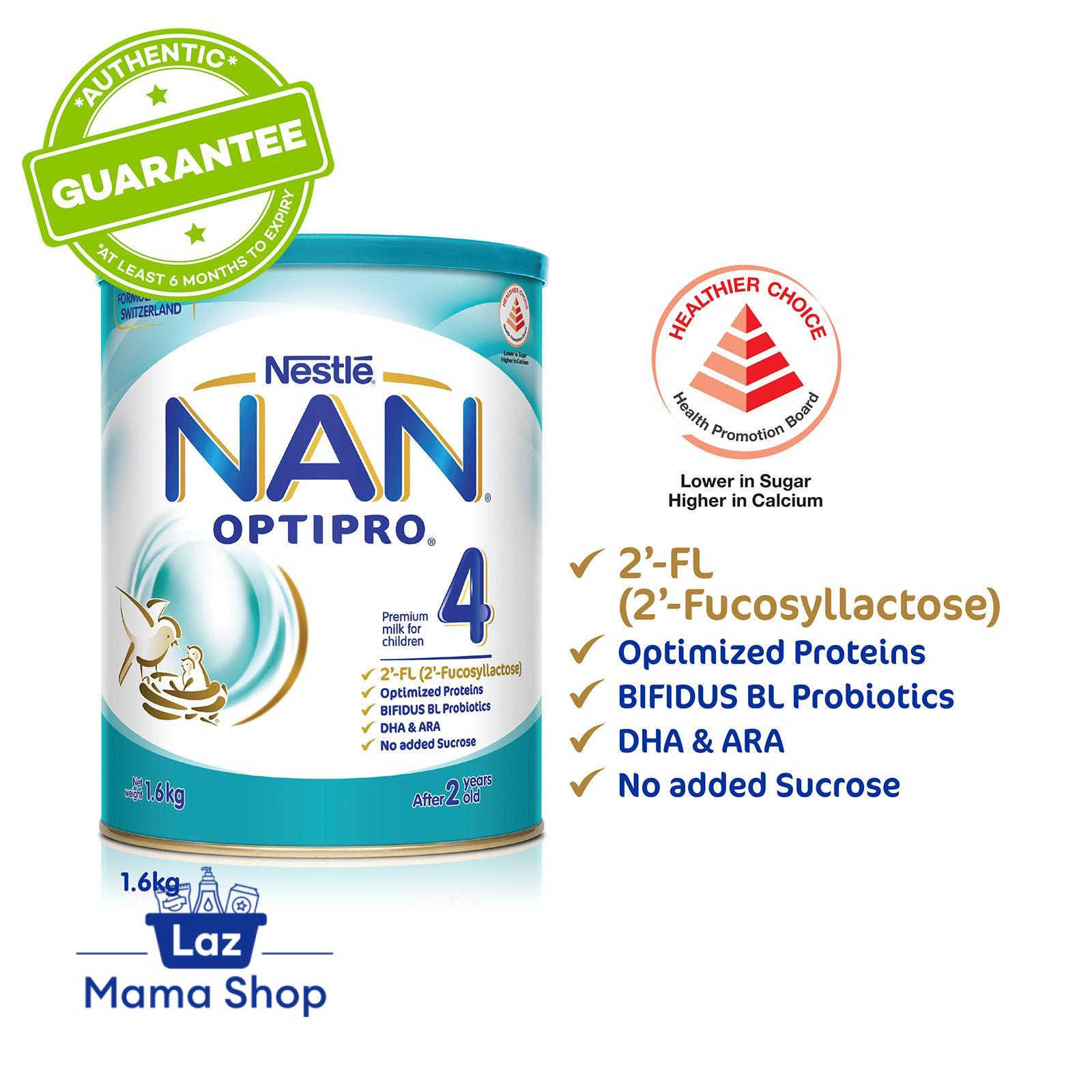Now with 2'-FL! NAN® OPTIPRO® 4 is a Healthier Choice product. It is 25% lower in sugar and 25% higher in calcium than regular growing up milk.