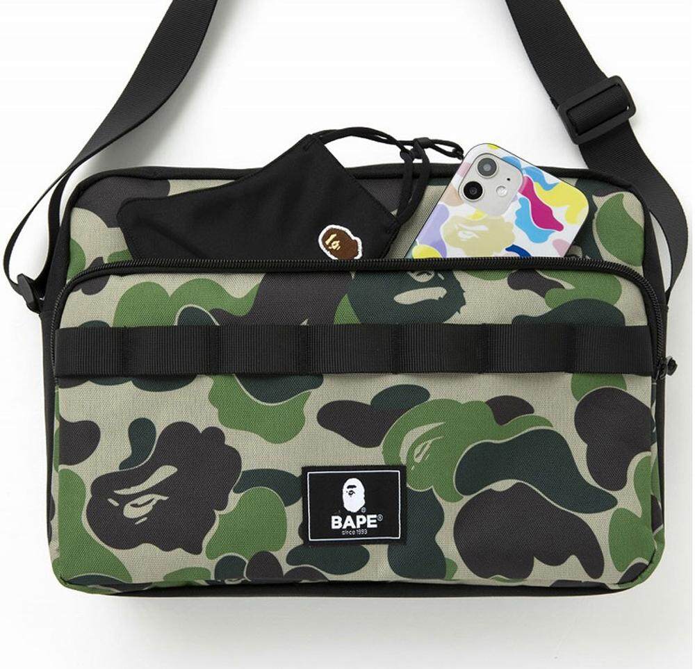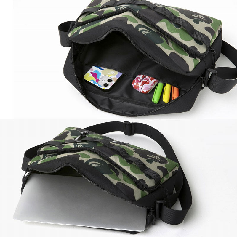2021 A Bathing APE Camo with BAPE Head Keychain Messenger Bag