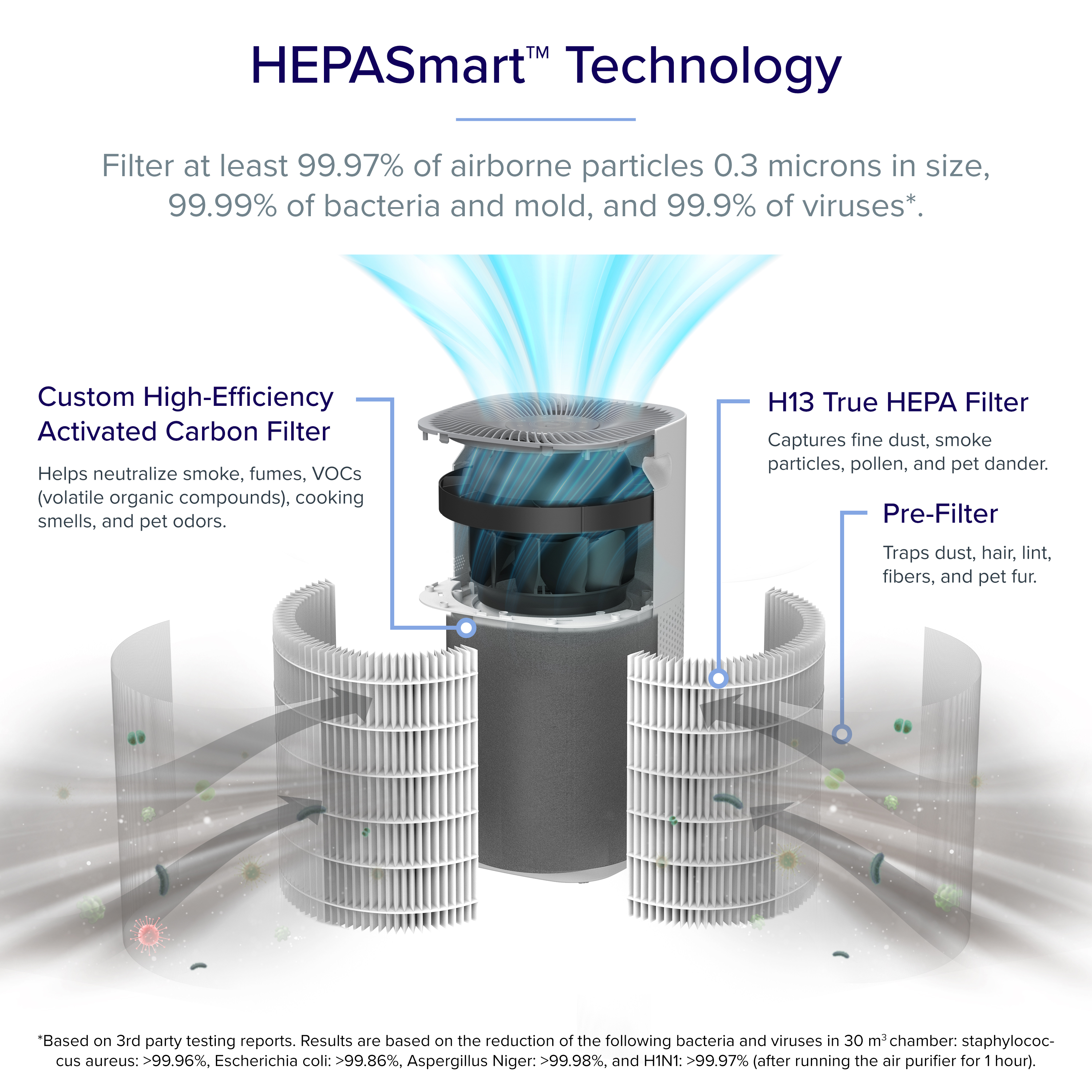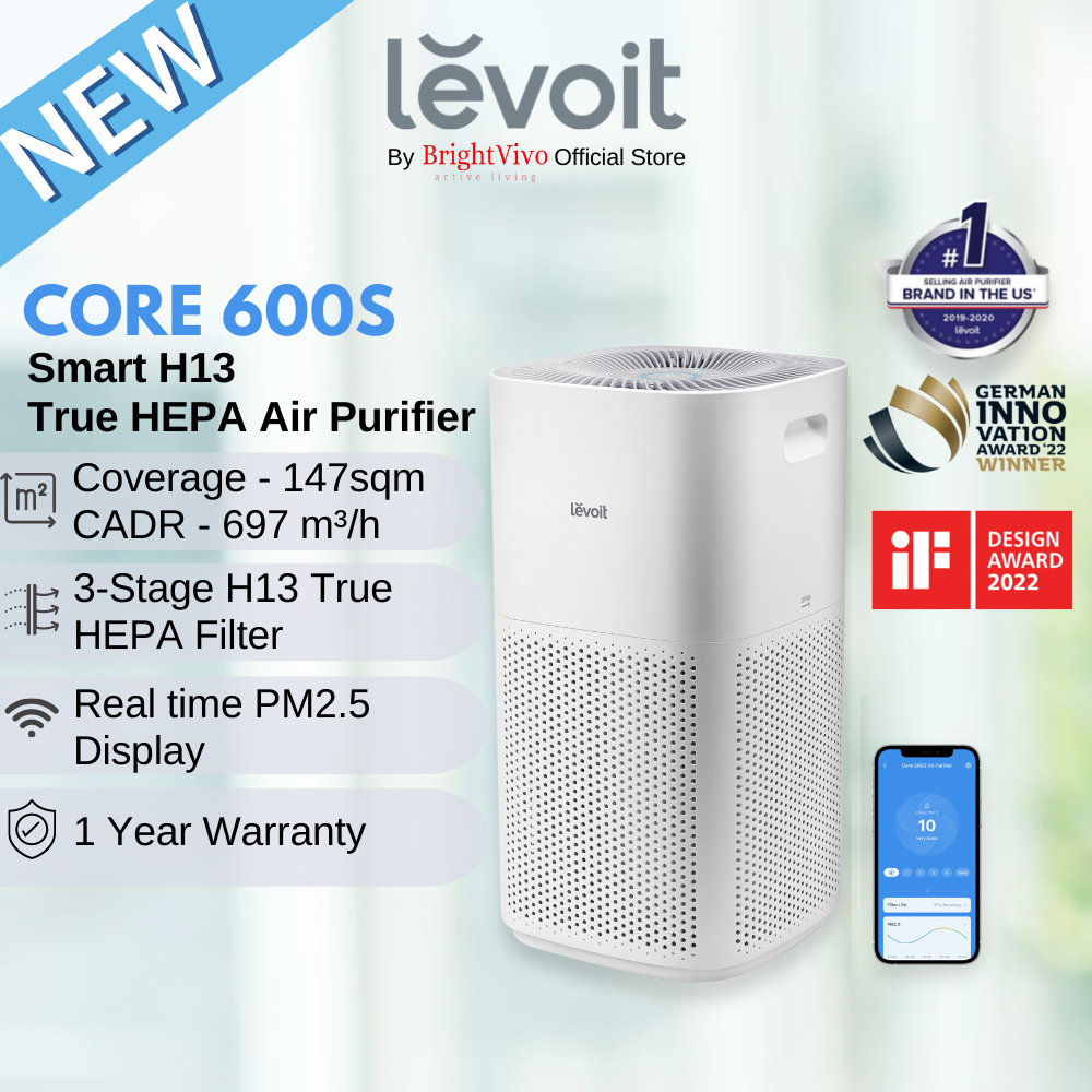 Levoit Core600S Smart Air Purifier, covers 147sqm, 3-Stage H13 True HEPA filters 99.97% of airborne particles 0.3microns in size for Allergies, Pets, Smoke, Dust, for extra-large room with Air Quality