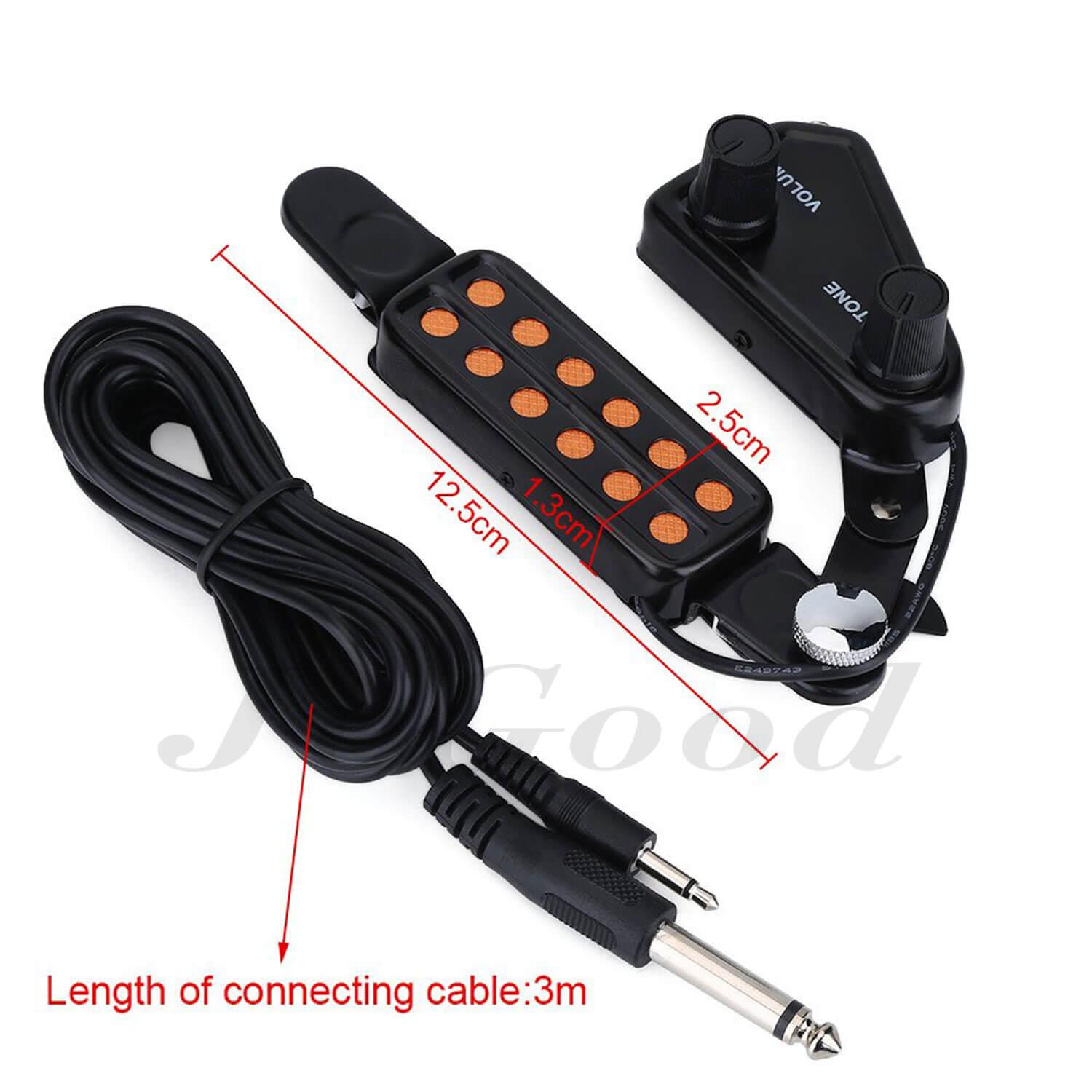 JvGood 12-hole Acoustic Guitar Sound Hole Pickup Magnetic Transducer with Tone Volume Controller Audio Cable