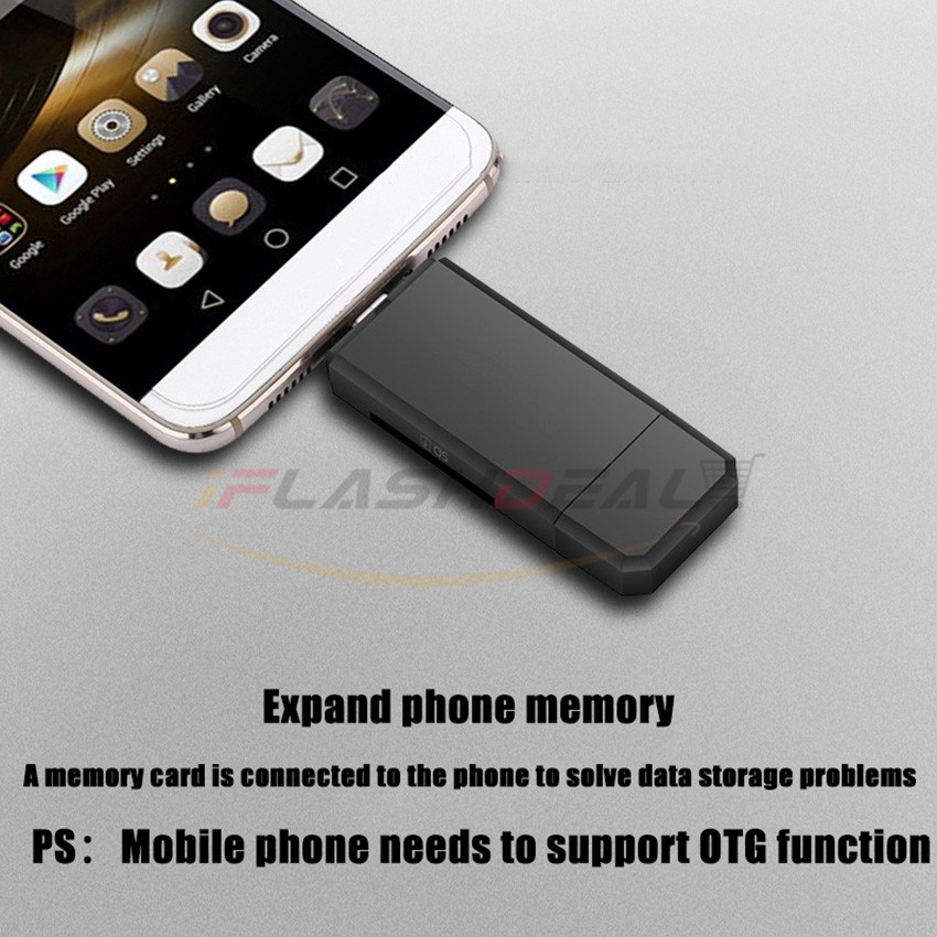 iFlashDeal SD/Micro SD Card Reader Writer USB 3.0 Memory Card Reader OTG Adapter Viewer Micro SD/TF Compact Flash Card Reader with 2 in 1 USB/Type C