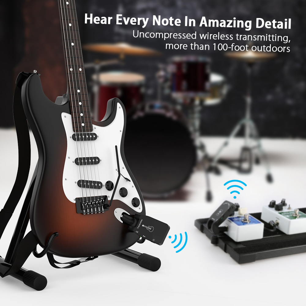Passive pickup, 24-bit/48KHz sample range, low latency, no signal loss and low noise, and effective transmission range is more than 100 feet outdoors.