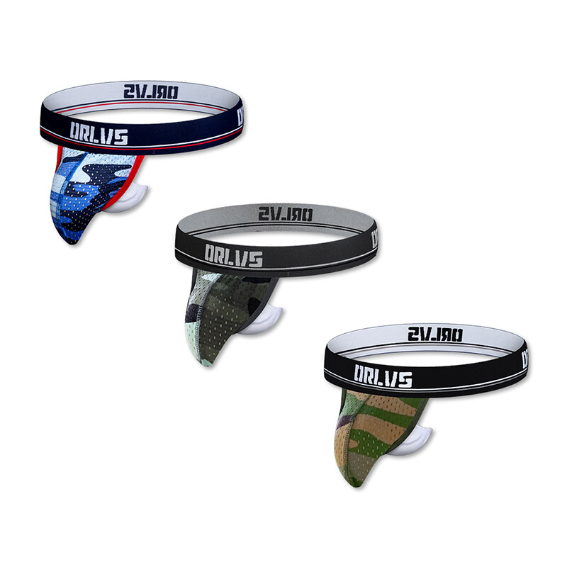 ORLVS 3Pcs Sexy Men Underwear Thongs Mesh Camouflage Breathable G String Underpants OR190