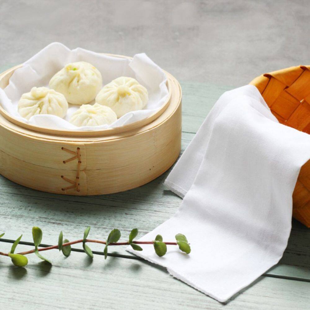 Natural Pure Cotton Steamer Cloth Square Non-stick Dumplings Bun Bread Snack Bamboo Steamer Gauze Fabric Steaming Supplies Useful Kitchen Gadgets