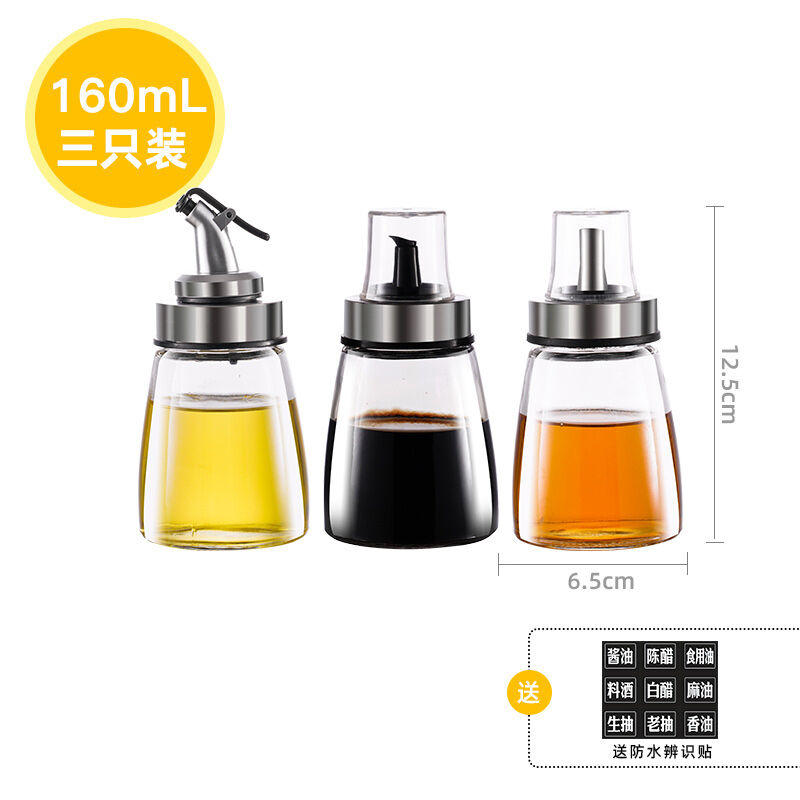 Small Oil Pot Glass Oil Bottle Leak-Proof Oil Tank Soy Sauce Vinegar Pot Kitchen Household Seasoning Bottle Set for Sesame Oil Bottle