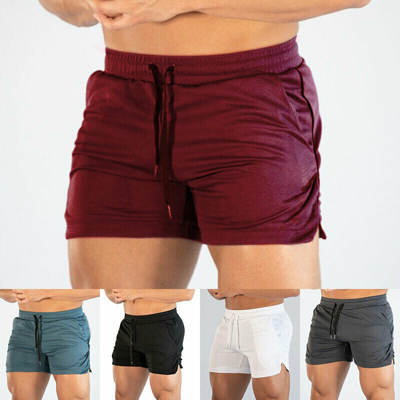 Happybuyner Men Fitness Stretchable Polyster Summer Gyms Workout Male Breathable Mesh Quick Dry Sportswear Jogger Beach Short Pants