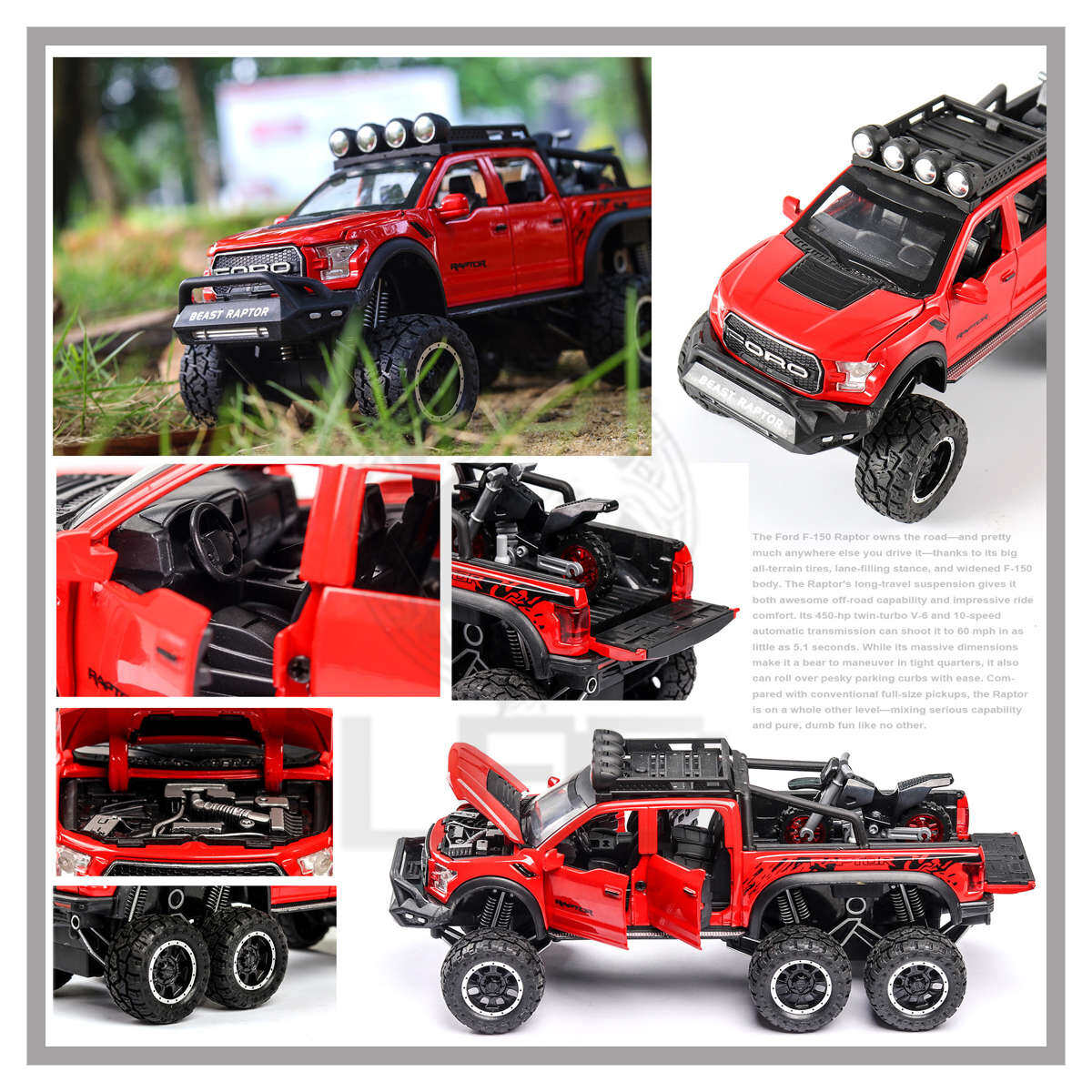 LEO 1:28 Ford Raptor F150 off-road 6*6 alloy car model diecast cars car for kids truck toys for kids toys for boys cars toys monster truck toys toy truck for kids big hot sale